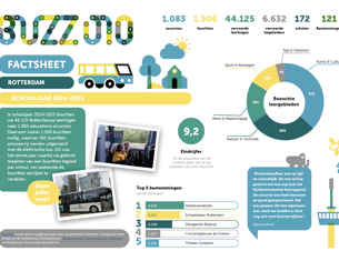 Buzz010, hét loket voor busritten naar educatieve excursies in Rotterdam, rijdt nu ook in Schiedam, Vlaardingen en Maassluis. Met deze uitbreiding kunnen nog meer leerlingen de klas uit, de stad in!